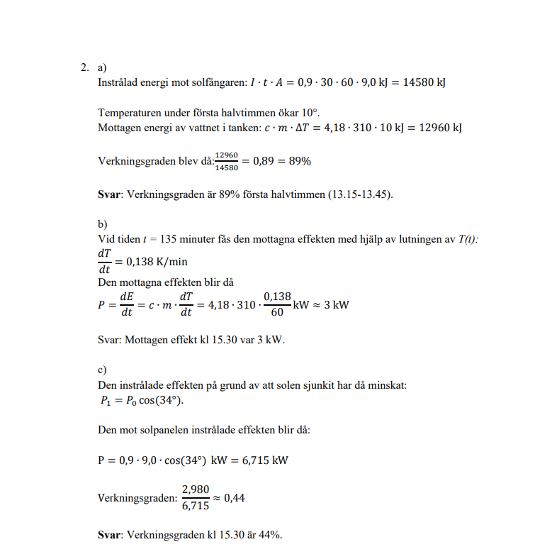 I deluppgift a) antar jag att jag har använt mer noggranna värden och därmed fått en högre verkningsgrad.