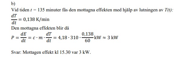Värdet 0.138K/min har lösningsförslaget fått från att uppskatta tangentens lutning i grafen vid tiden t=135.