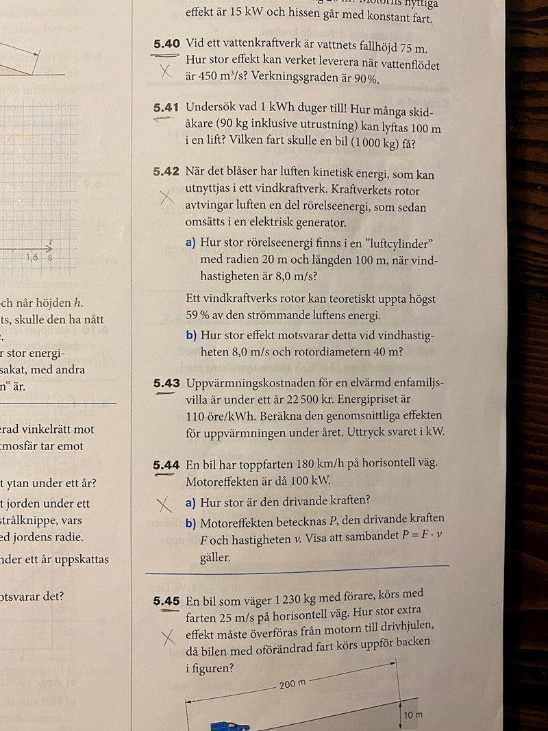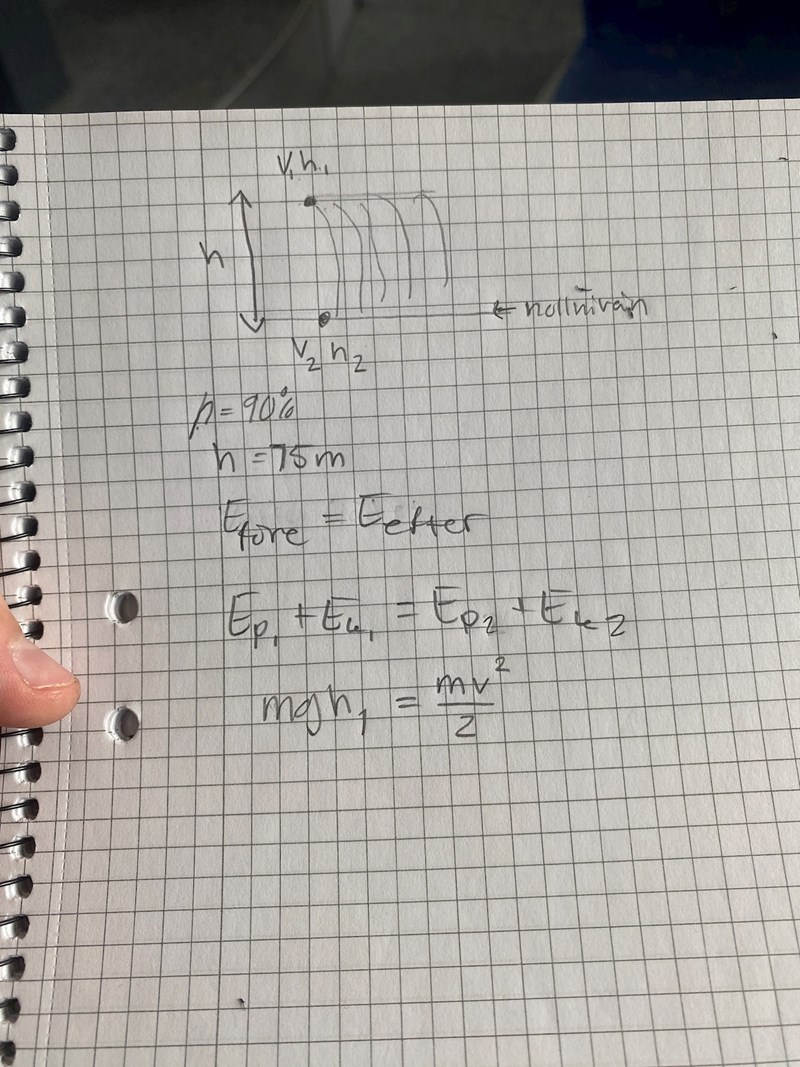 vet inte hur jag ska fortsätta. Jag vet att jag kan få fram vattnets massa från densiteten * volymen. Jag har satt en nollnivå, så h2 = 0 och tänkt att v1 = 0 då det inte har gått över till rörelseenergi än. Sätter jag in värden får jag fram hastigheten för strömmen. Men har ingen aning varför jag ska ta fram den. Haha hjälp