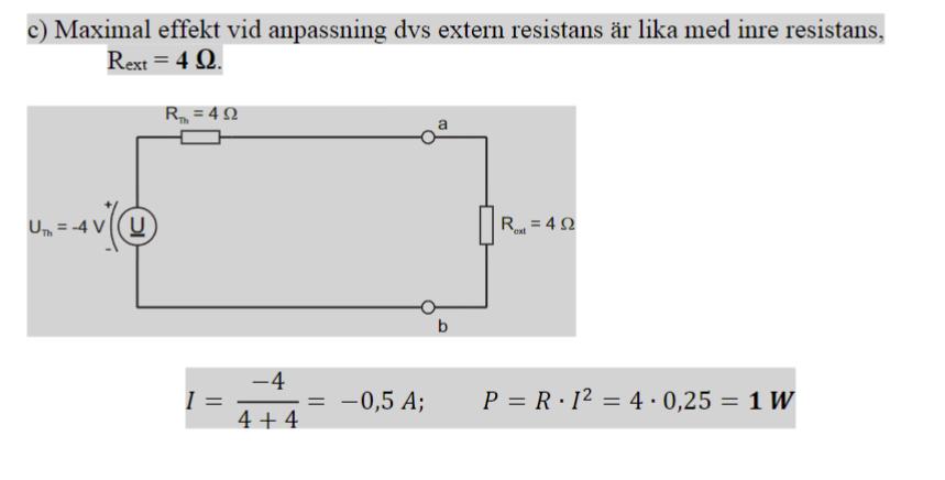 Maximal effekt i Rext får man om man väljer Rext = Rth. Effekten i Rext blir då