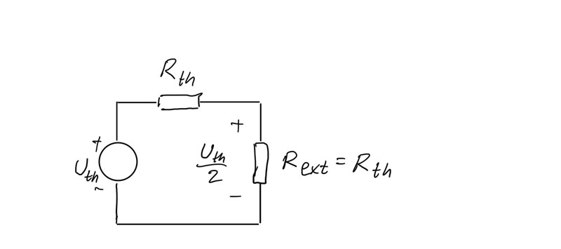 Okej, tack för förklaringen. Jag är med på att Rext=Rth för maximal effekt på grund av effektanpassnig. Men varför blir det Uth/2? Själva tvåan är jag ej med på var den kommer ifrån eller varför.