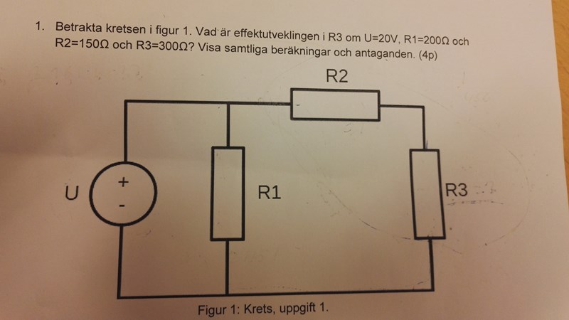Effekten P över R3 ges av U*I, där U = I*(R3), vilket om du kombinerar dess uttryck blir