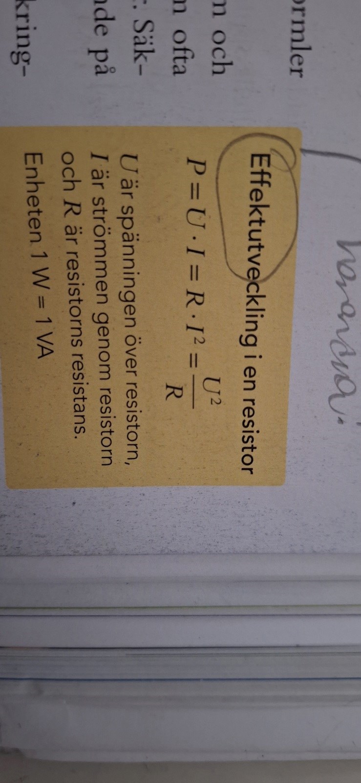 Effektutveckling i en resistor?