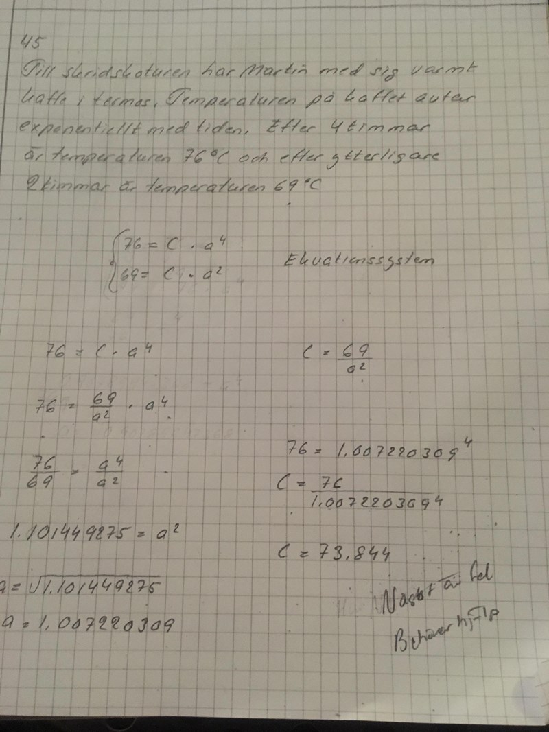 Det står "efter ytterligare 2 timmar" det vill säga: . Testa att räkna med det istället.
