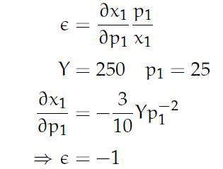 I uppgiften gäller Y=250 och vi ska beräkna eftrfr-elasticiteten i den punkt där p1 = 25.
