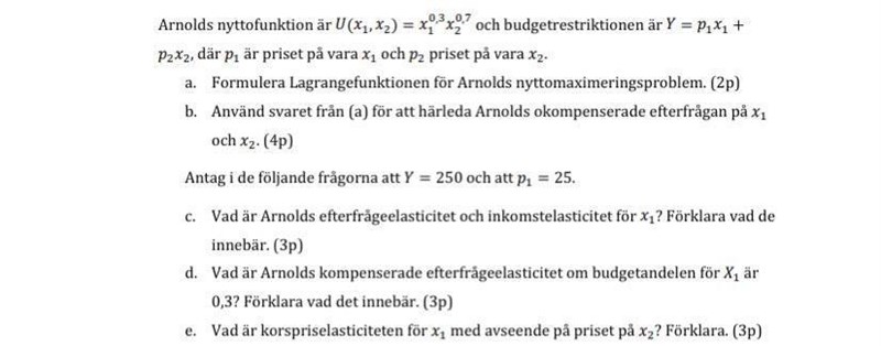 Det frågas efter eftrtfr- o ink-elasticitet för vara #1 (inte för x1)
