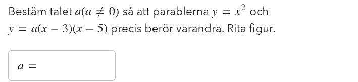Jag gör följande uppgift. Jag har fått ut derivatan ur båda funktioner och har förstådd att funktionerna kommer att skära varandra i en punkt. När jag kollar vidare på lösningen ser jag att man antar att i tangeringspunkten är lutningen samt funktionsvärderna samma.