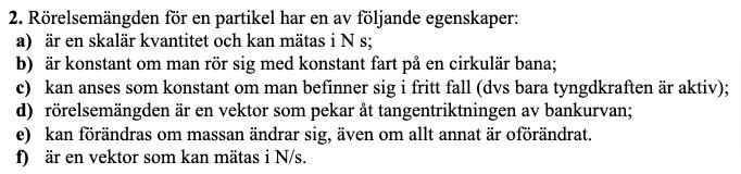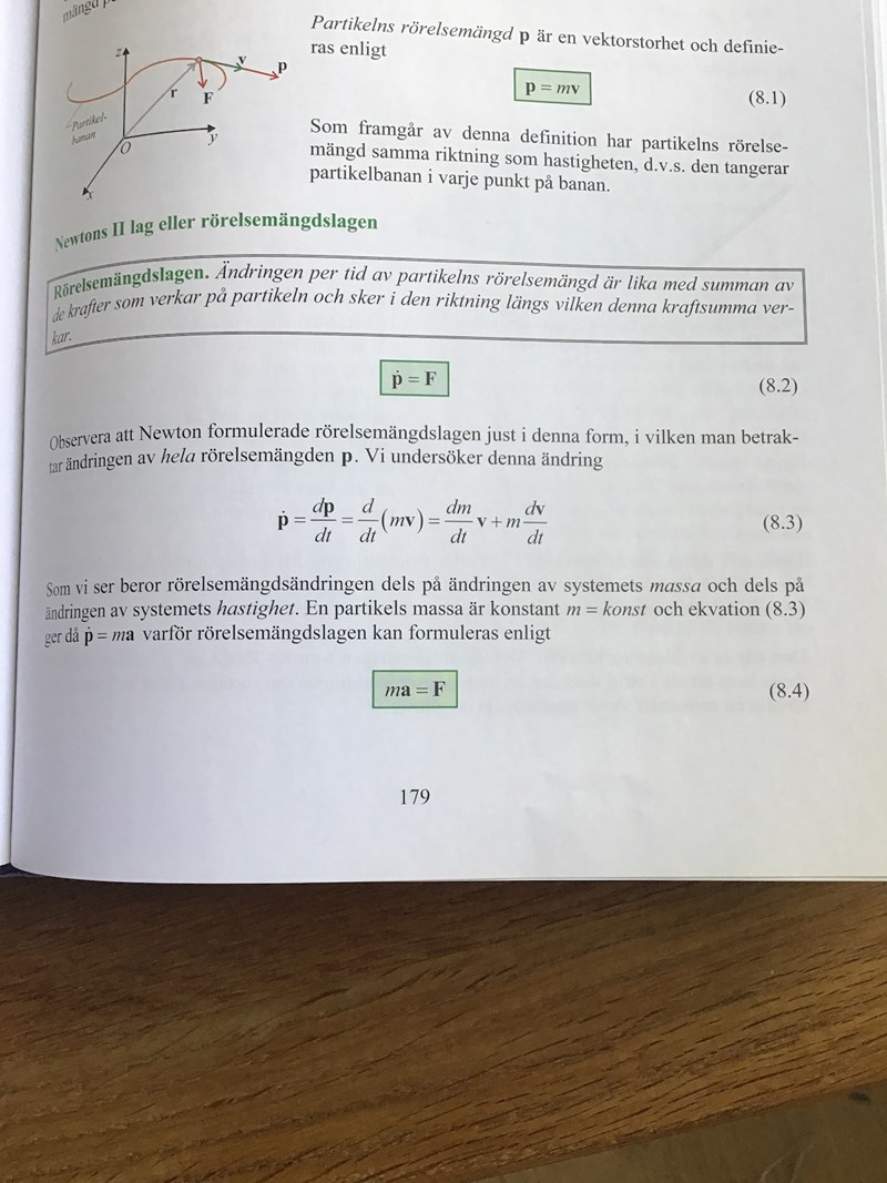 Jag förstår att rörelsemängden är en vektor som pekar åt tangentriktningen av bankurvan. Men varför är e) fel? Newtons andra lag lyder ju p(prick) = F. Alltså är förändringen i rörelsemängden också beroende på om massan förändras.