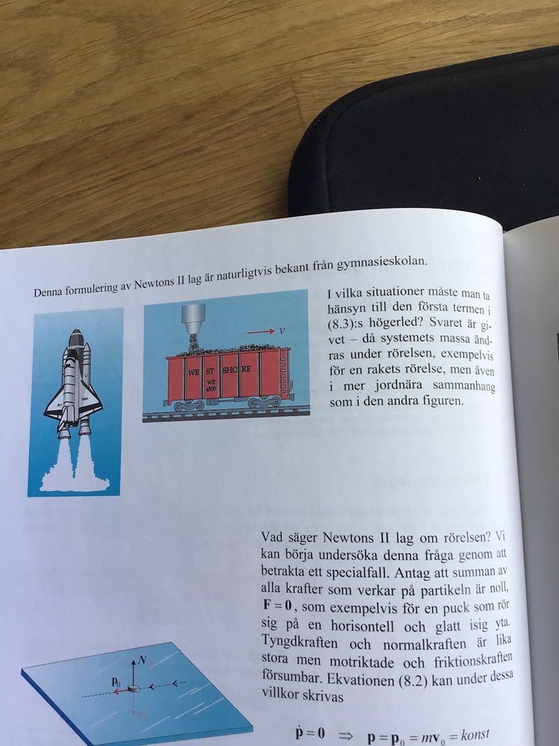 Smaragdalena skrev:Då måste väl systemet bestå av båda dessa delar från början? Och när det gäller rymdraketen så är rörelsemängden för raket + bränsle /avgaser konstant. Raketen rör sig åt ena hållet, avgaserna åt det andra.