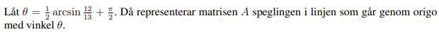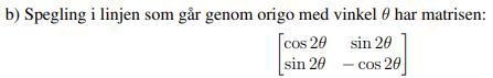 Omvänt, om du har en 2x2 matris A med egenvärden 1 och -1 där egenvektorer svarande mot olika egenvärden är ortogonala så representerar matrisen A en spegling i en linje genom origo. Visa detta!