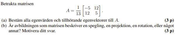 Om det är en spegling, vad kan du säga om egenvärden och egenvektorer?