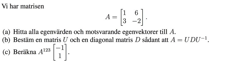 a) Inga större problem här, använder det karakteristiska polynomet det(A-I)