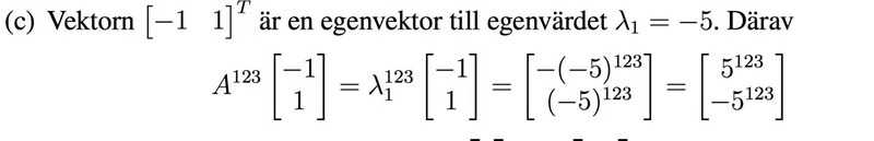 Förstår inte riktigt vad man gör här. Är med på att är en egenvektor, men varför kan man ta tillhörande egenvärde upphöjt till 123? Förstår inte hur det är samma sak som *?