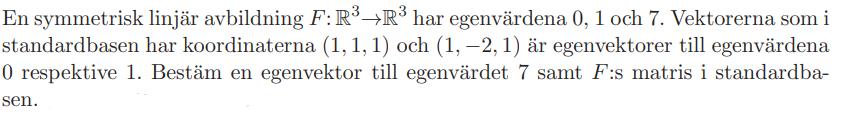 Jag väljer först en egenvektor som är ortogonal mot de andra egenvektorerna, så (1,0,-1), med hur hittar jag F?