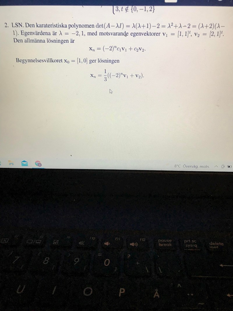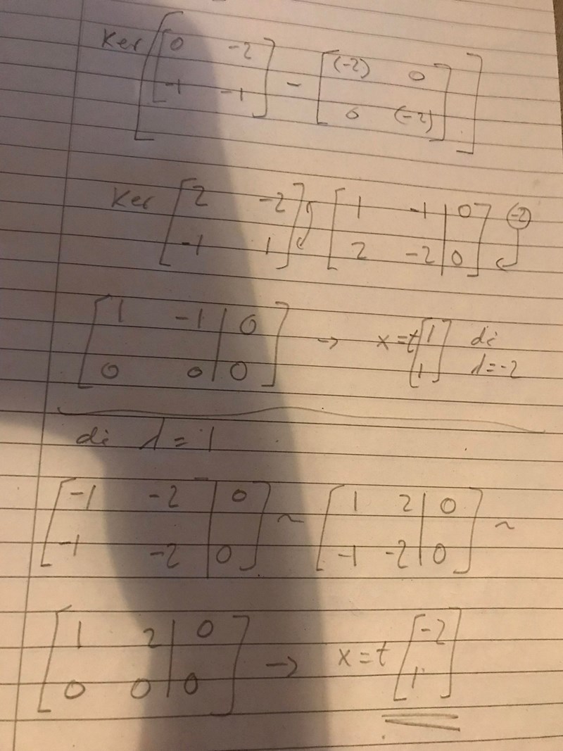 får jag egenvektorn (-2,1) för egenvärdet lika med 1, men i lösningsförslaget har vi egenvektorn (2,1) 0ch inte (-2,1)