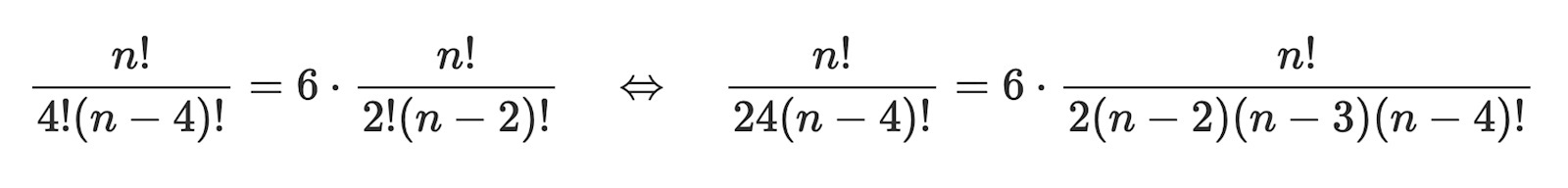 n!4! (n-4)!= 6 n!2! (n-2)!