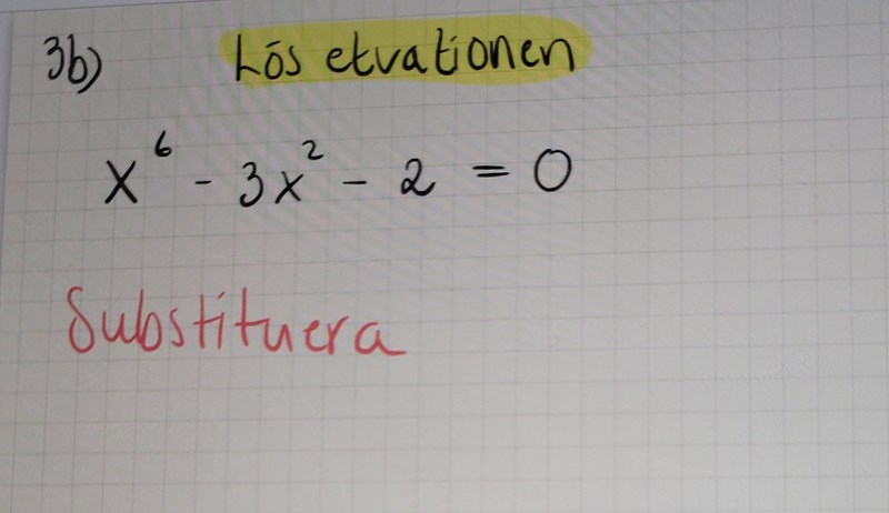 Hur kan man lösa denna? Det hade varit lättare om 3x^2 hade en 3:a som exponent om man ska substituera. Då hade jag kunnat ansätta t=x^3. I detta fallet ser det inte ut så.