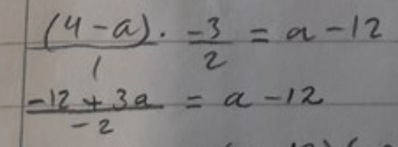 (4-a)* -3/2 = a - 12 /4-a *(4- a)