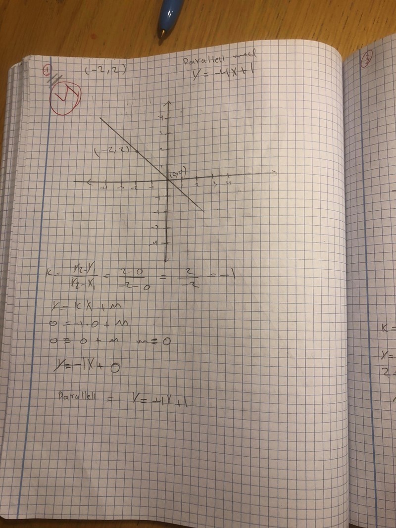 Börja med att rita linjen och punkten (-2,2). Lägg in din bild här så att vi kan se att det har blivit rätt.