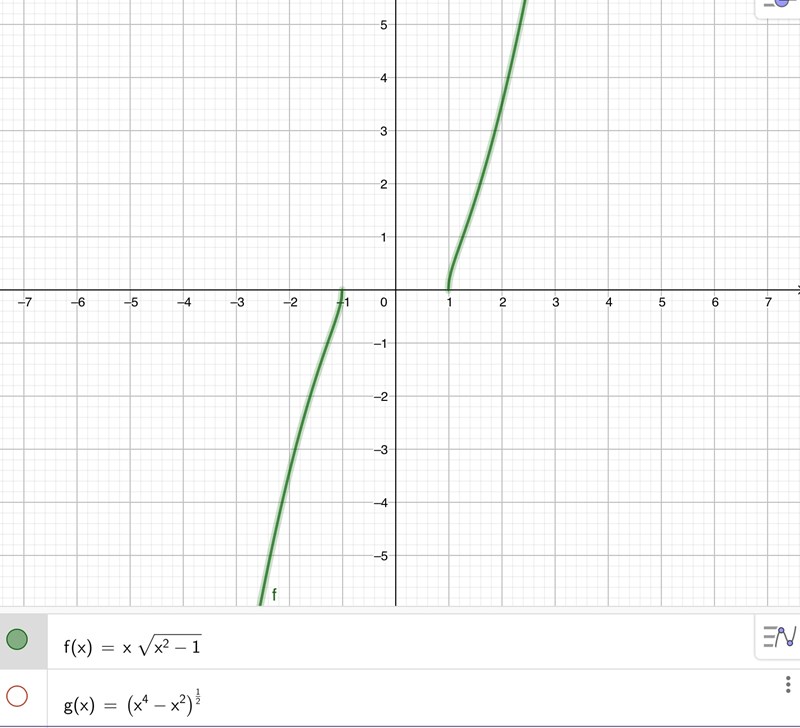 Alternativt kan du använda signumfunktionen så här: $$f(x)=sgn(x)\cdot\sqrt{{x^4-x^2}$$.