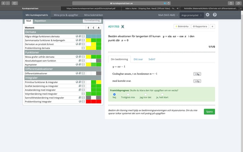 DoftenAvRosen skrev:Smaragdalena skrev:Hur får du reda på tangentens lutning i en viss punkt, när du vet kurvans funktion?