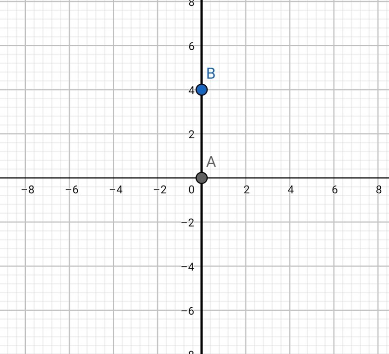 När de skriver "punkten (0, 4)" så menar de en punkt i koordinatsystemet och det är den punkt som har x-koordinaten 0 och y-koordinaten 4, dvs din punkt B.