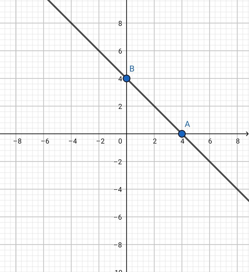bestäm ekvationen för den räta linje som går genom punkten (0, 4) och har k-värdet −1