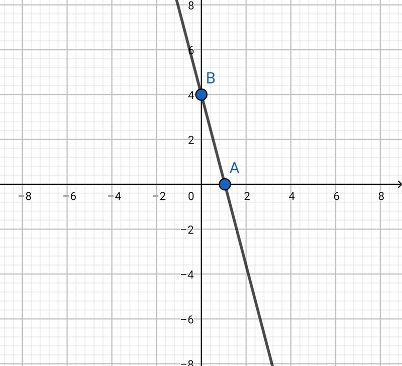 När koefficienten (faktorn) framför x är -1 så brukar ettan inte skrivas ut och ekvationen blir då y = -x + 4.