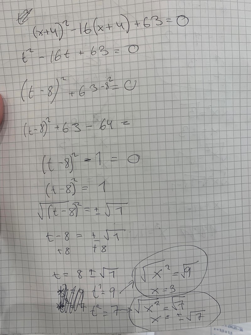 Laguna skrev:Varför drar du roten ur t? t är inte den här gången, det är x+4.