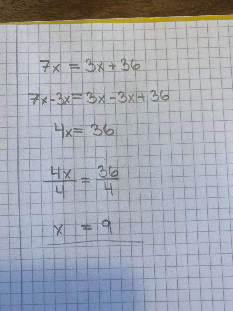 7x - (5x+2) = 3x + 36 - (5x+2)