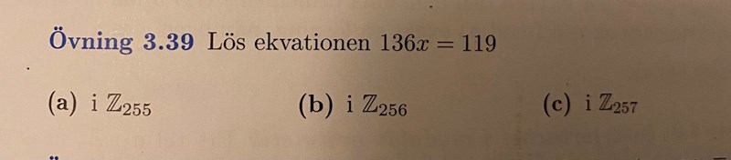Hej! Vad menar man med ”i Z255” ? ( asså i a uppgiften ) Tack på förhand!!!
