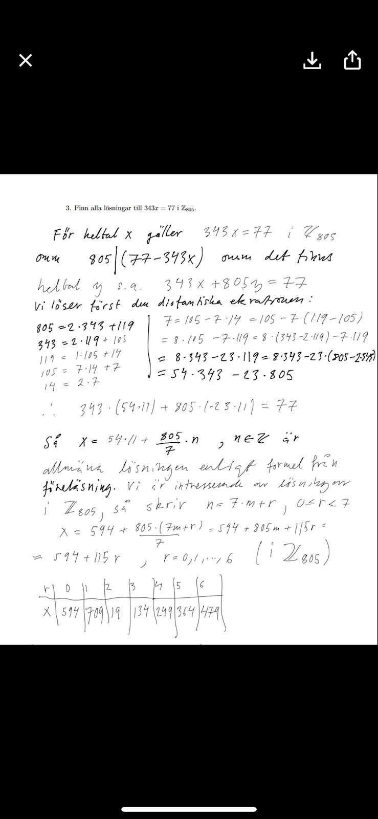 Tack för svaren det uppskattas!! jag fattar inte hur min lärare har tänkt ( det är en likande uppgift som den jag frågade om) …varför har han skrivit 805 | ( 77 -343x ) ?