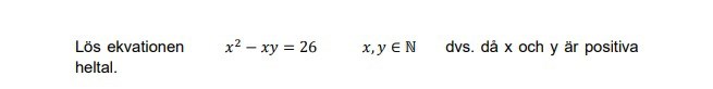 Det finns bara ett sätt att skriva 26 som en produkt av två positiva heltal. Ser du sedan vänsterledet som x*(x-y) kanske det klarnar.