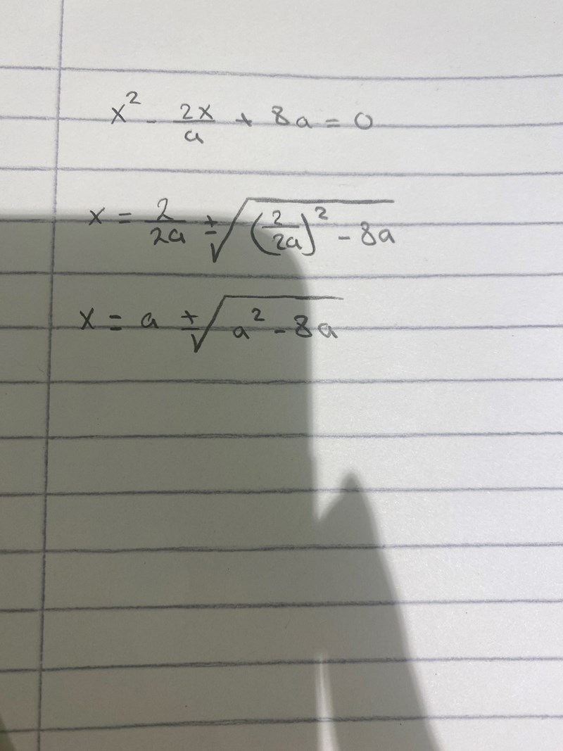 Jag har alltså kommit fram till att diskriminanten är 1/a^2 -8a men fastnar på att gå vidare.