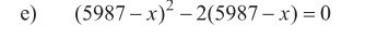 Jag hade börjat med att göra en substituering, nämnligen t=5987-x. Då får man ekvationen vilket man enkelt kan lösa till t=2 eller t=0. I substitueringen får man då 2=5987-x och 0=5987-x som ger lösningarna x=5985 respektive 5987.