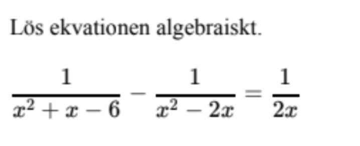 Eftersom alla bråk har samma nämnare kan vi ta bort dessa. (förlänger hela ekvationen med 2x(x-2)(x+3))