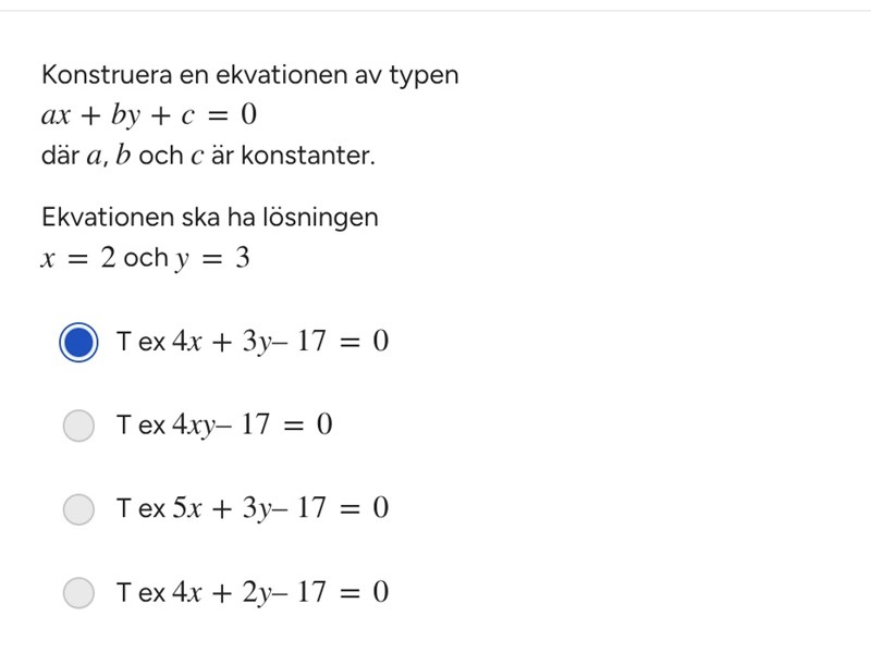Vi vet nu att Den första (med blå ring) är det rätta alternativet,