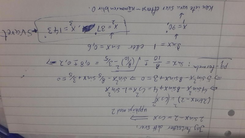 Jag tänker att vi multiplicerar båda led med cos x, för att sedan flytta över de trigonometriska funktionerna till VL och konstanten till HL.