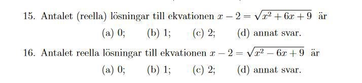 Kvadrerar man får man x - 2 = på uppgift 15 och x-2 = på uppgift 16