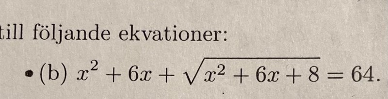 Har försökt lösa genom att flytta alla icke (roten ur) termer till HL för att sedan kvadrera, men det blir väldigt höga siffror och känns inte helt rimligt att det är tänkt att man ska göra så.