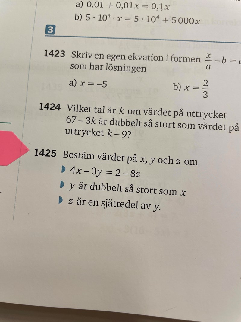 Ekvation Bestäm värdet på X Y och Z