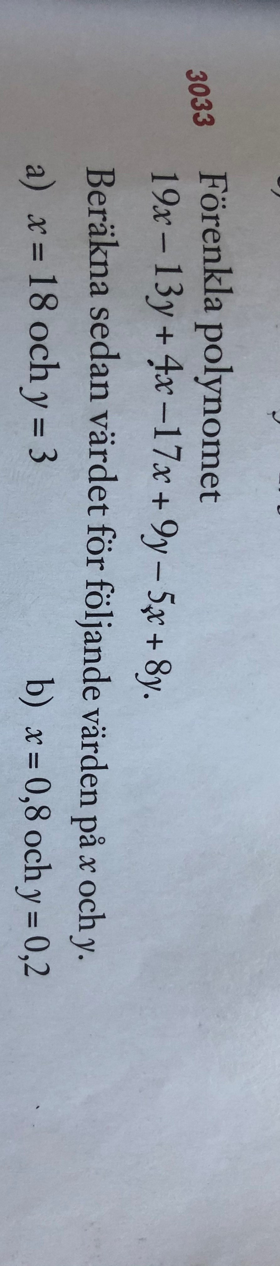 b) sätt in x=0,8 och y=0,2