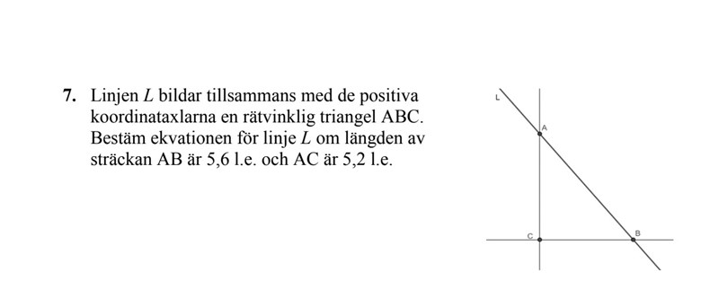 Jag vet inte om jag tolkar uppgiften rätt. Men linje L är väl = 5,6?