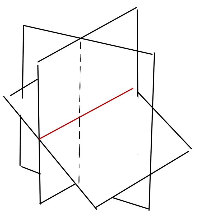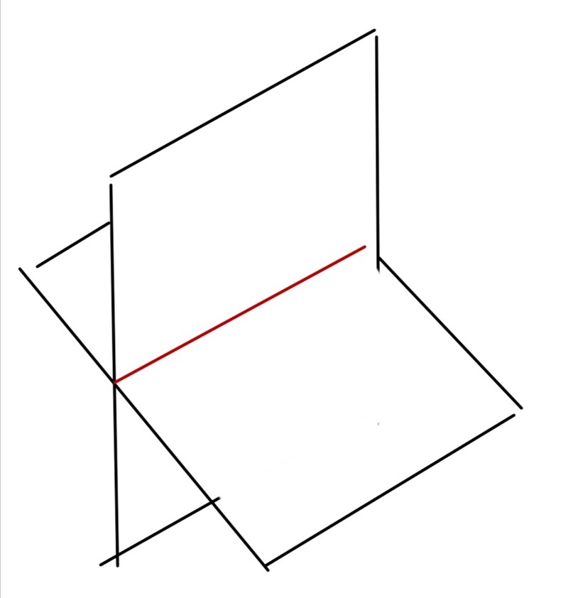 hej, igen, så detta betyder att planet som är vinkelrät mot två plan har alltid skärningslinjens riktningvektor som normalvektor.