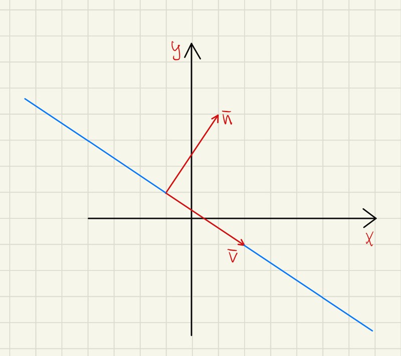 Riktningsvektorn v skall vara ortogonal mot normalvektorn n. Den skall således uppfylla