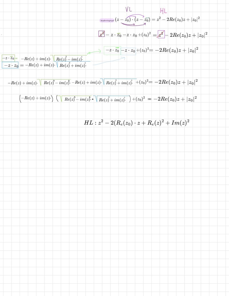Efter subtraktion av z2z^2 och |z0|2|z_0|^2 får vi -z(z0+z0¯)=-2Re(z0)2-z(z_0+\bar{z_0})=-2Re(z_0)^2