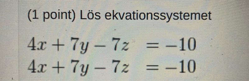 Hur löser jag detta ekvationssystem? Antar att substitutionsmetoden inte går att använda pga att jag ar tre okända. Har prövat med gausserelimination, men det gick inte heller.