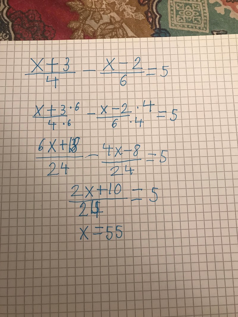 12(x+3)/4 - 12(x-2)/6 = 12*5