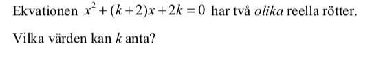 lös ekvationen och fundera på vad som ska gälla för att det ska vara två olika reella lösningar.