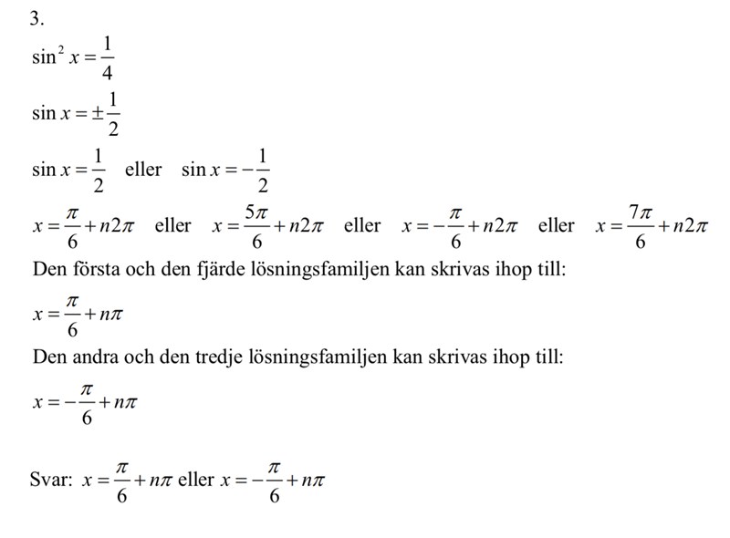 men hur kan tex första och den fjärda lösning skrivas ihop och bli pi/6 ?